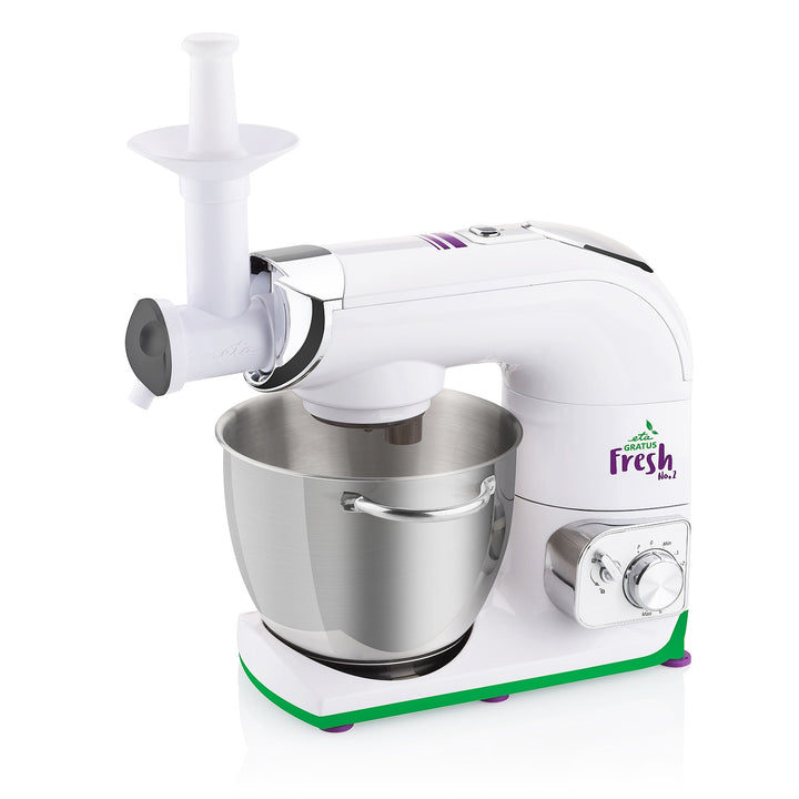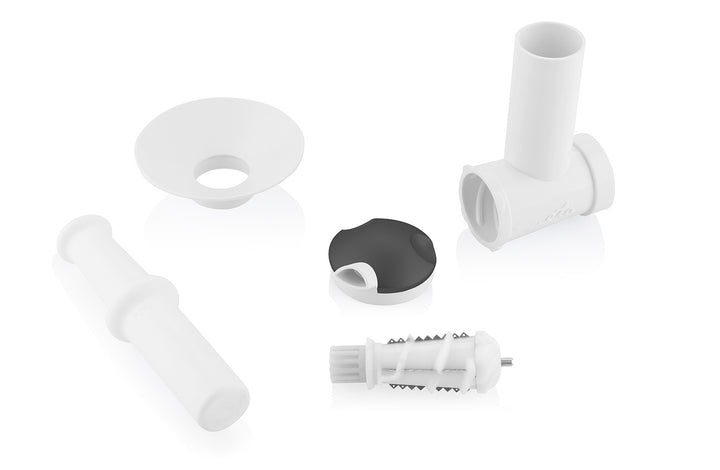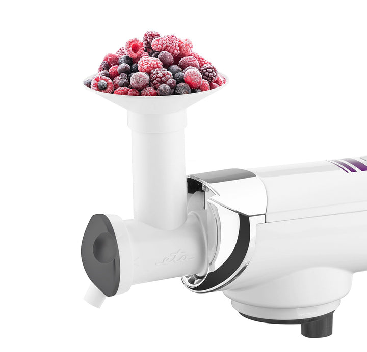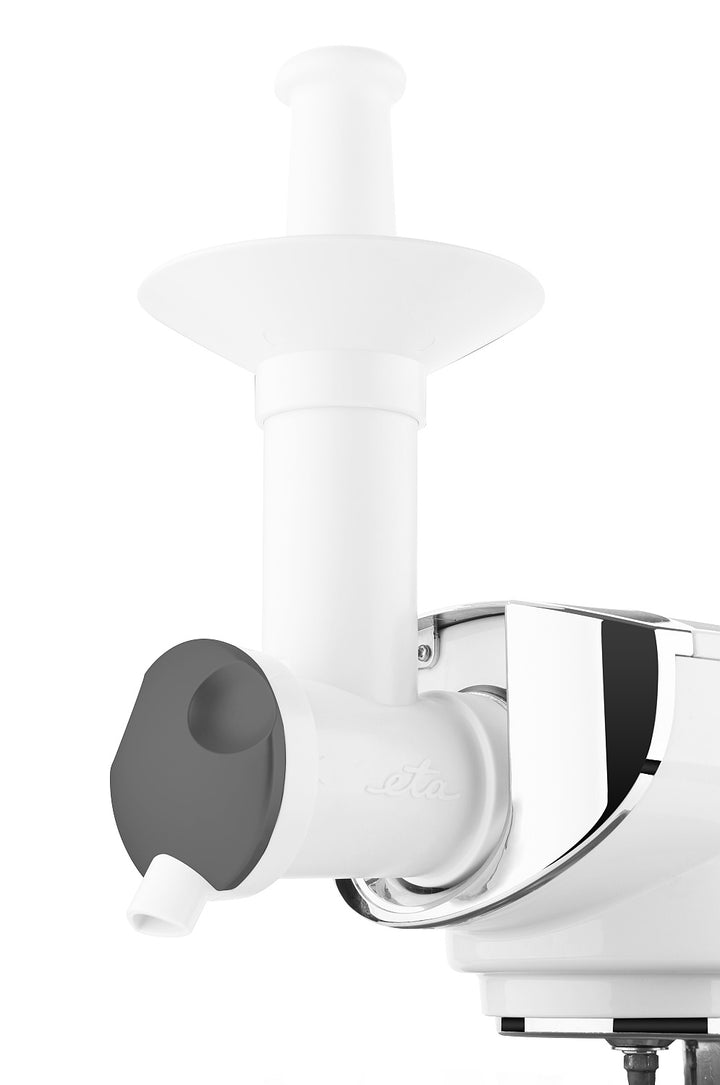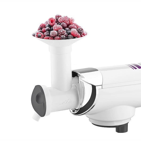 Zmontujesz go w prosty sposób i szybko. Jego konserwacja jest łatwa z powodu kompletnie demontowanego mechanizmu a poszczególne części możesz myć i w zmywarce do naczyń. Lody będą mieć bardzo delikatną strukturę, dzięki 36 nożom ze stali nierdzewnej, które obrabiają surowce bardzo oszczędnie. Otwór do napełnienia umożliwia wkładać i większe kawałki owoców. Pomożesz sobie ubijakiem, który posuwa surowce w kierunku do noża w celu ich rozmielenia.