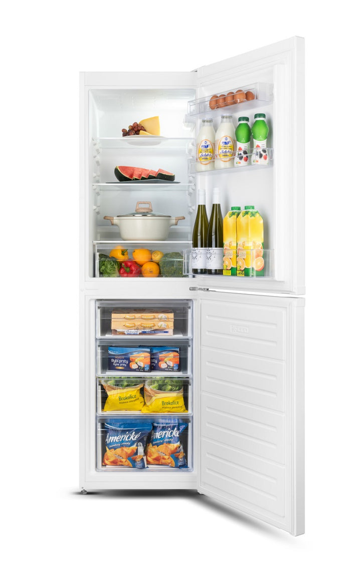Lodówka podzielona jest na część chłodzącą i zamrażarkę. Część chłodząca o pojemności 163 litrów pomieści zakupy całej rodziny. Znajdują się w niej szklane półki, przezroczyste szuflady oraz półki na drzwiach.