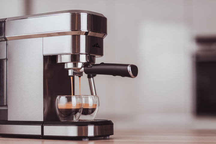 Kolbowy ekspres do kawy ETA Stretto jest wyposażony w ubijak z miarką i 2 sitka ze stali nierdzewnej do przygotowania jednej lub dwóch filiżanek kawy.