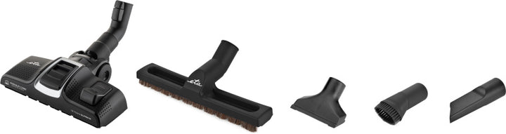 Akcesoria w zestawie: szczotka do twardych podłóg, dysza do parkietu, ssawka do podłóg / dywanów, dysza do tapicerki, dysza szczelinowa