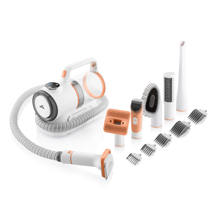 Odkurzacz ETA Pet Master z łatwością poradzi sobie z sierścią twojego pupila. ETA Pet Master to kompleksowy zestaw 6 w 1 do pielęgnacji sierści, który nie tylko przycina, wyczesuje i stylizuje sierść twojego zwierzaka, ale także od razu zasysa wszystkie włosy bezpośrednio do odkurzacza.
