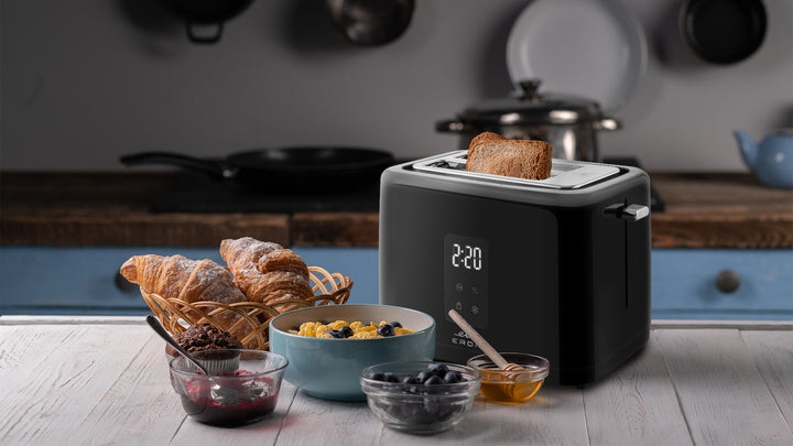 owoczesny wyświetlacz LED i dotykowy panel sterowania pozwalają łatwo wybrać jeden z 7 poziomów opiekania – od delikatnie podpieczonych po chrupiąco złote tosty. Dzięki równomiernemu opiekaniu z obu stron możesz zapomnieć o przypalonych brzegach, a funkcja ponownego podgrzewania przyda się, gdy chcesz odświeżyć tosty.