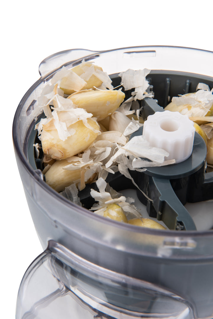 Końcówka do obierania czosnku jest odpowiednia do usuwania łupin z prawie każdego rodzaju czosnku. Wystarczy usunąć łodyżkę i podzielić główkę na ząbki. Obrane ząbki czosnku będą gotowe w zaledwie kilka sekund.