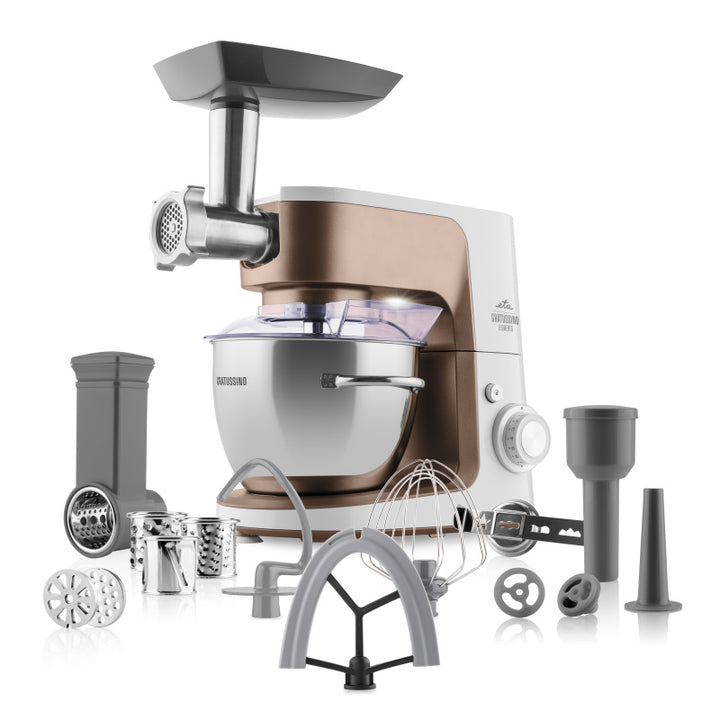 Robot planetarny ETA Gratussino III Elements jest gotowy na wszystko – od lekkich kremów po domowe burgery. W podstawowym zestawie znajdziesz: