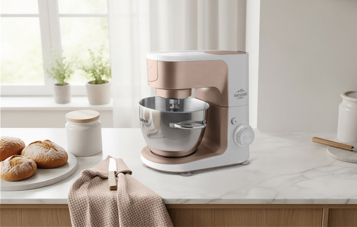 ETA Gratussino III Elements udowadnia, że robot planetarny może być nie tylko niezawodnym pomocnikiem, ale także designerskim dodatkiem. Świetnie sprawdzi się zarówno w mniejszych, jak i większych kuchniach – docenisz jego funkcjonalność, kompaktowe rozmiary i prostą obsługę. Standardem są także: blokada odchylanego ramienia, antypoślizgowe nóżki oraz możliwość mycia elementów niemetalowych w zmywarce.