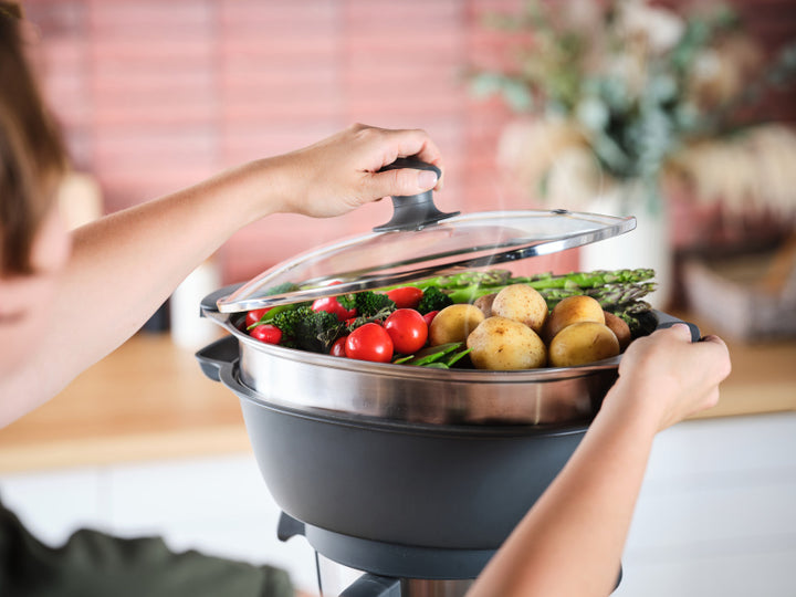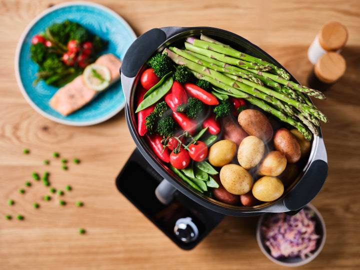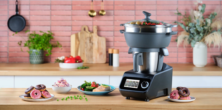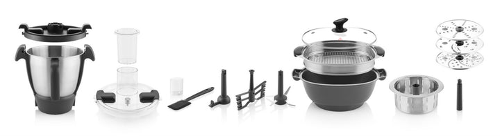 Specjalna funkcja: programy automatyczne, zintegrowana skala, ciasto rośnie, ogrzewanie, gotowanie na parze, połączenie WiFi, gotowanie