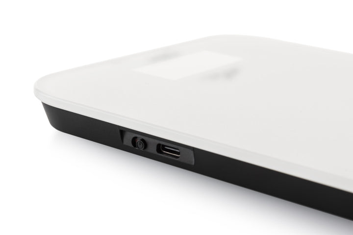 Wagę można używać zarówno z wbudowanym akumulatorem Li-Ion (ładowanym przez USB-C), jak i podłączoną do sieci (adapter nie jest częścią zestawu). Wskaźnik słabej baterii oraz przeciążenia poinformują Cię w odpowiednim momencie, by nic nie zakłóciło Twojej pracy w kuchni.